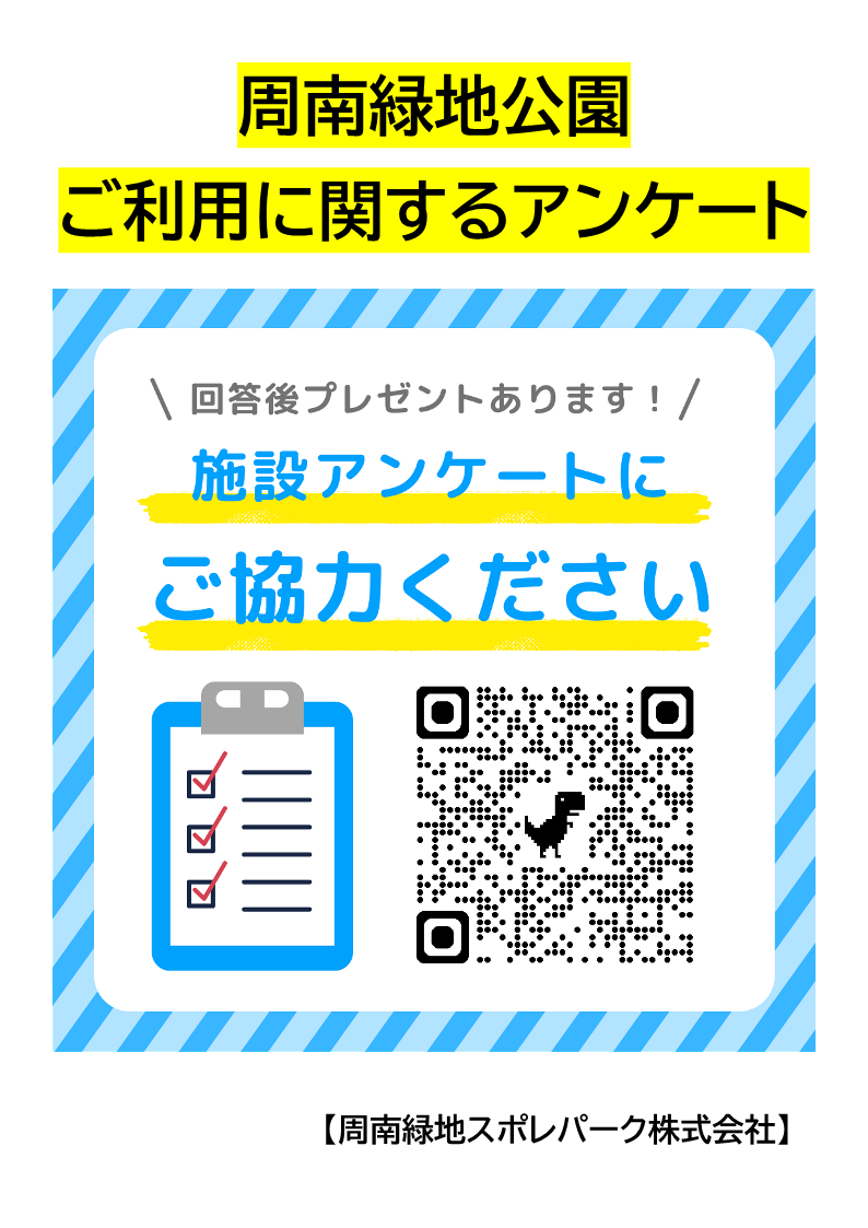 お知らせWhat's New HOME >お知らせ お知らせお知らせ一覧 周南緑地公園のご利用に関するアンケート実施中! 2025年11月21日 周南緑地公園のご利用に関するアンケート実施中です。 本施設のサービス改善の為、皆さまからの貴重なご意見をお聞かせいただきたいと思います。ご協力のほど、よろしくお願いいたします!ネットからのご回答はこちらから アーカイブ 2025年 2024年 2023年
