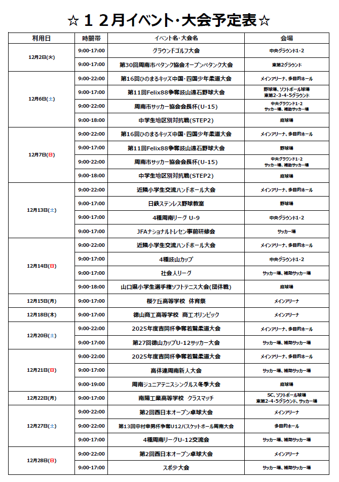 大会・イベント開催日は駐車場が満車になる場合がございますので、ご来場の際はご注意ください。