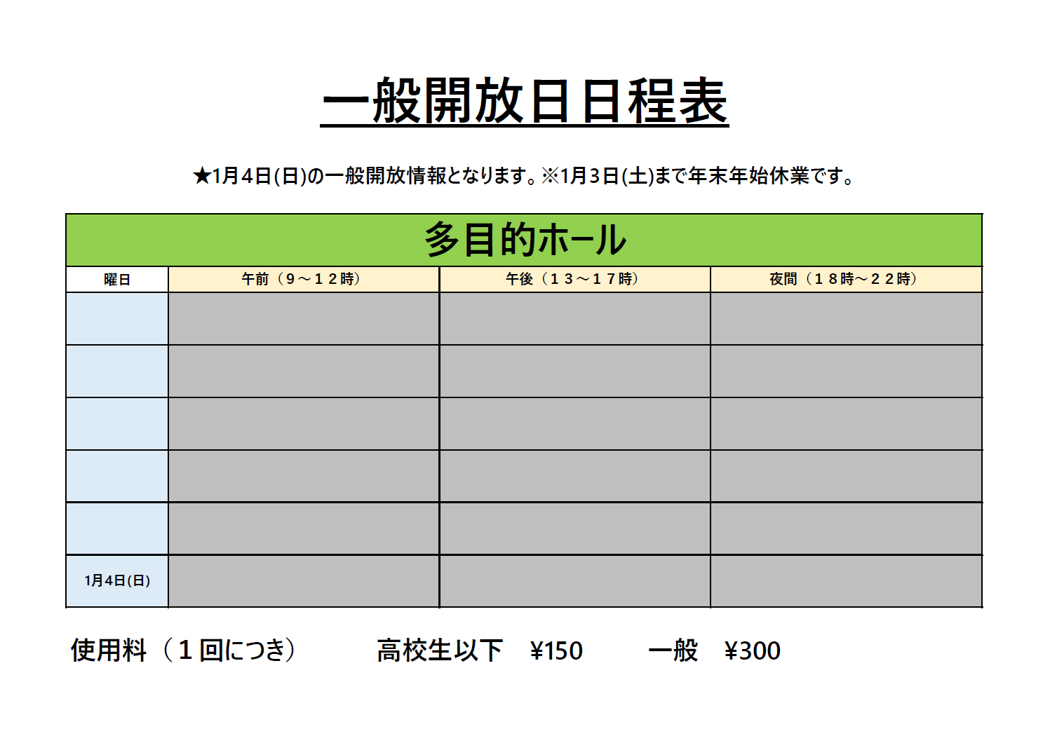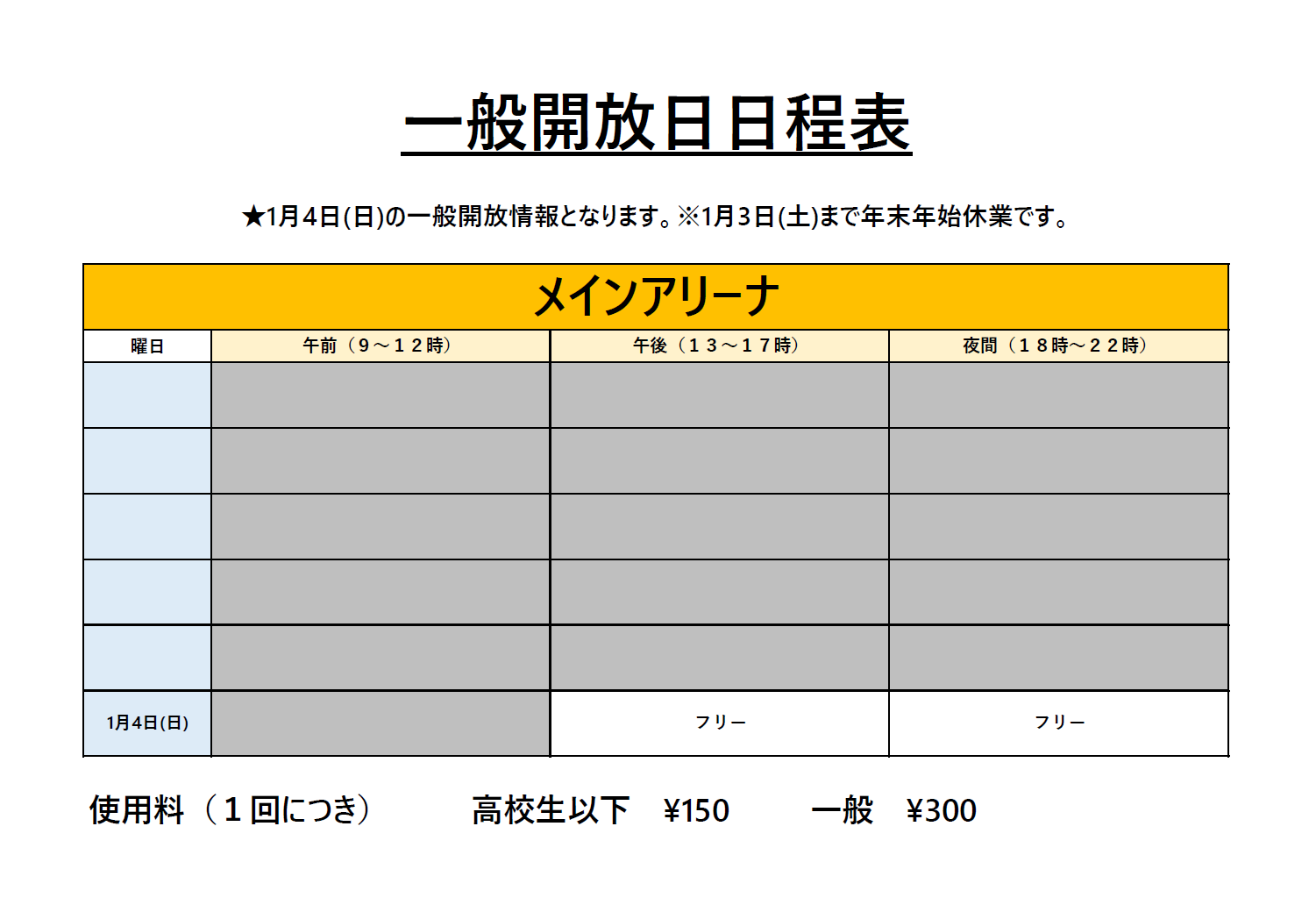 また、曜日・時間帯によって出来る競技は決まっていますが、