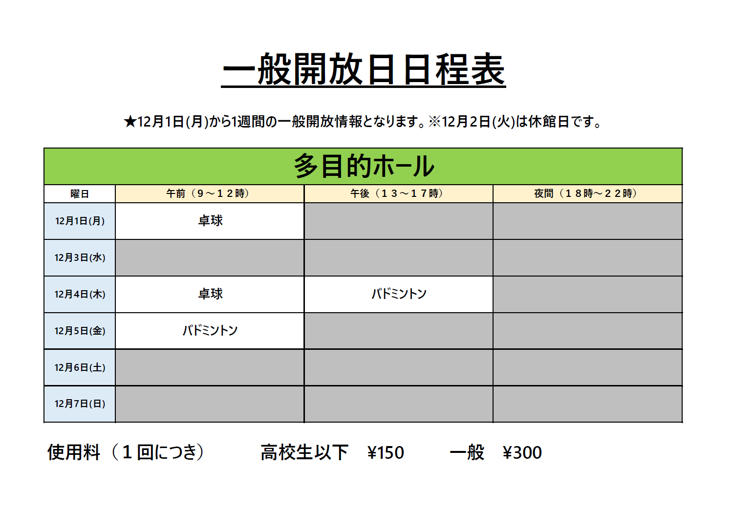 12月1日~7日の一般開放について