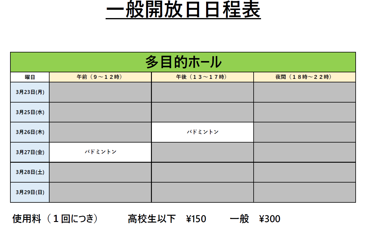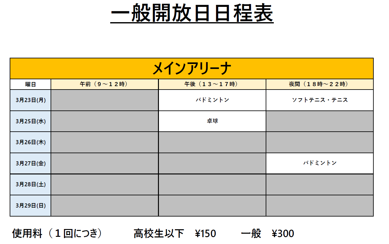 3月23日~3月29日の一般開放について