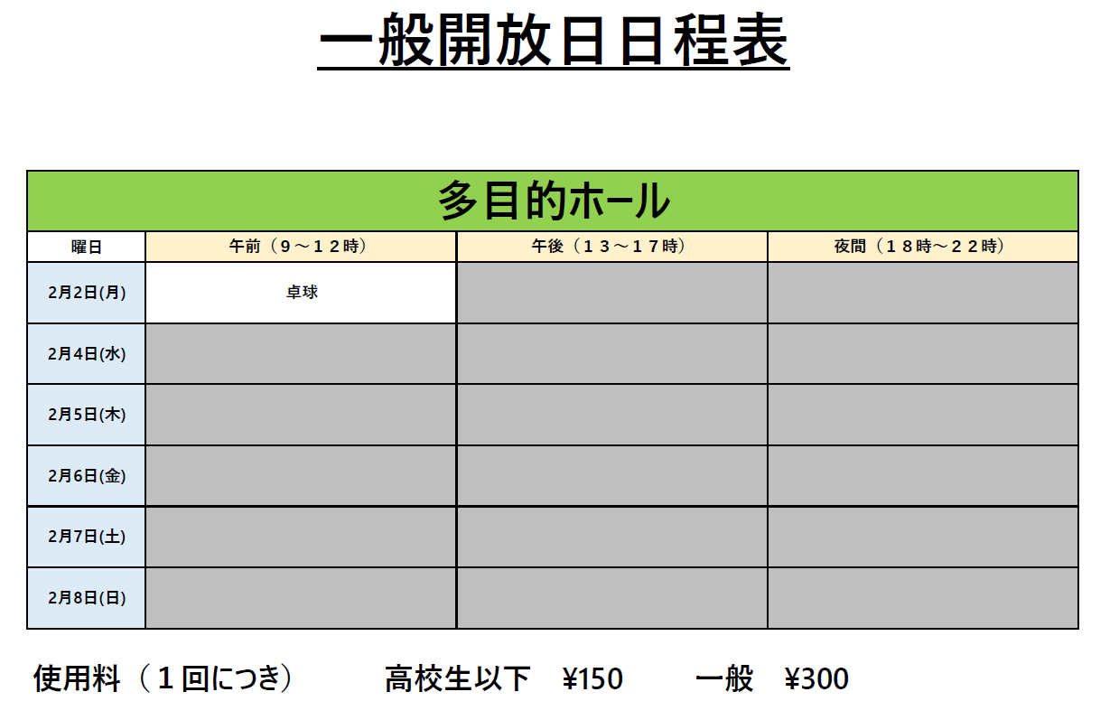 2月2日~2月8日の一般開放について